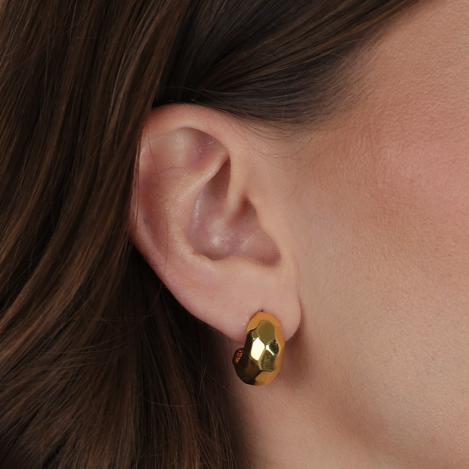 Brinco Dourado de Meia Argola Orgânico Quadrado